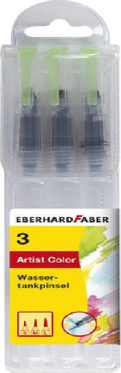 Deze waterpenselen hebben een reservoir (7,5ml) dat gevuld kan worden met water. De watertoevoer wordt gecontroleerd door een lichte druk op het handvat wanneer het penseel het papier raakt. Voor nat in nat technieken met bijvoorbeeld aquarelverf of potloden. Om het schoon te maken stevig in het handvat knijpen en het vuile water zal van het penseel vloeien. Deze verpakking bestaat uit 3 stuks met verschillende maten: Penseelpunt S, M en L.