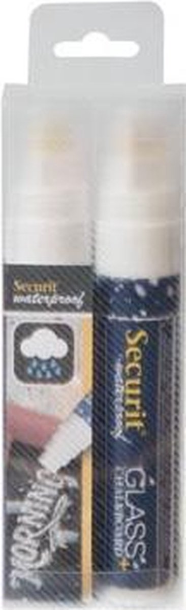 Met brede punt van 7-15 mm. Deze marker is waterbestendig, loopt niet uit en verkleurt niet. Te gebruiken op alle niet-poreuze oppervlakken. Reinigen doe je met een spons en de Securit reinigingsspray. Blister van 4 stuks. wit, blister met 2 stuks