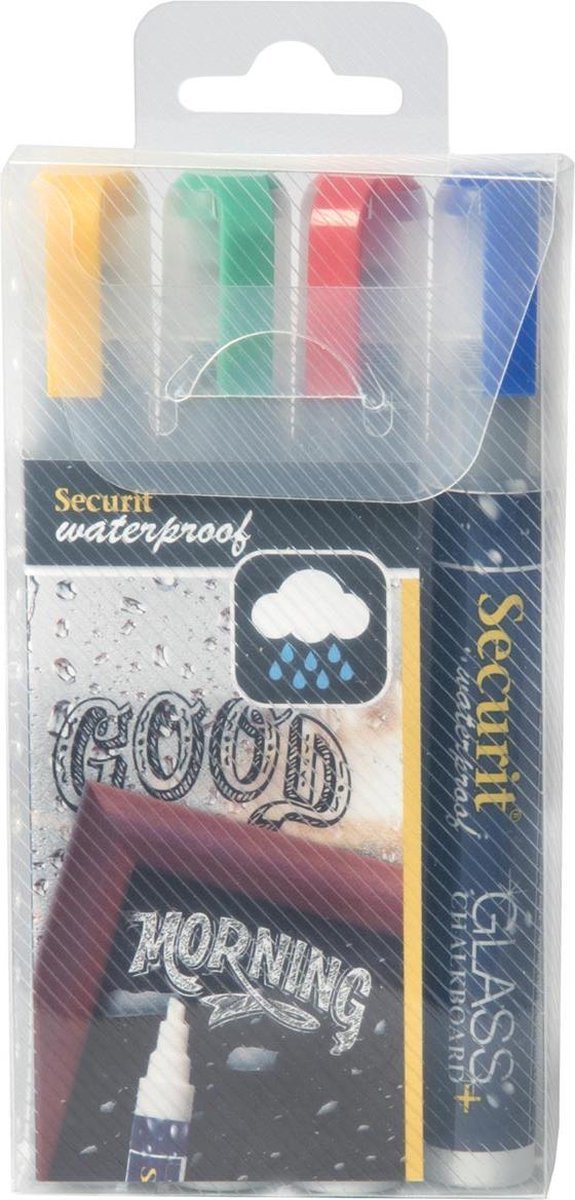 Securit Waterproof krijtmarker medium, blister met 4 stuks in geassorteerde kleuren