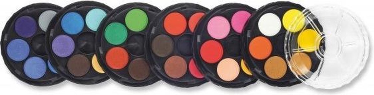 Maar liefst 36 kleuren waterverfnapjes veilig opgeborgen in een praktische, stapelbare carrousel bestaande uit 6 lagen. Niet alleen handig maar ook gemakkelijk meet te nemen. Deze waterverf van goede kwaliteit heeft een hoge pigmentatie en daardoor heldere kleuren.