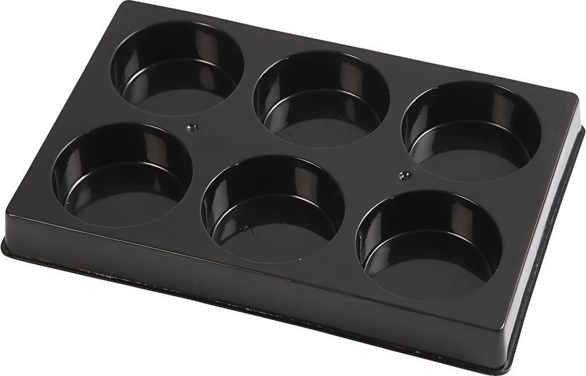 Plastic palet met 6 vakken geschikt voor solide navulblokken van tempera waterverf.Plastic palet met 6 vakken geschikt voor solide navulblokken van tempera waterverf - kleuren zijn onderling te mengen - kwast schoonmaken met water.