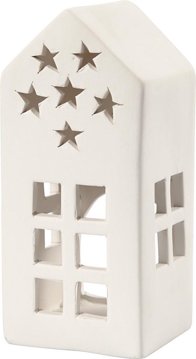 Waxinelichthouder van terracotta met uitgestanste sterren.Waxinelichthouder van terracotta met uitgestanste sterren.
