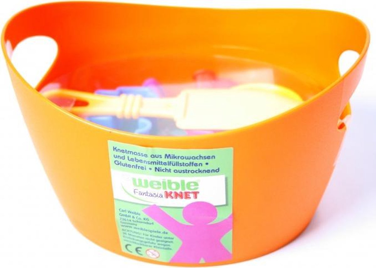 Set van 6 verschillende kleuren klei + 6 vormpjes en 1 mesje. Verpakt als rol in gezellig gekleurde plastic draagbak. Let op!~Dit product wordt assorti uitgeleverd, u kunt dus niet vooraf bepalen welke kleur u zult ontvangen.