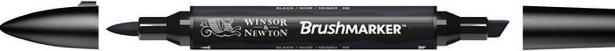 Zwarte kleur Winsor & Newton BrushMarker. De Winsor and Newton BrushMarkers zijn alcohol markers, voorzien van een brede (beitel) punt en een penseel punt. Deze markers worden veel gebruikt in combinatie met de ProMarkers en zijn zeer geliefd bij illustratoren, kunstenaars, architecten, ontwerpers en hobbyisten. Inkt op alcohol basis Dual tip Afwerking zonder vegen Keuze uit 72 kleuren