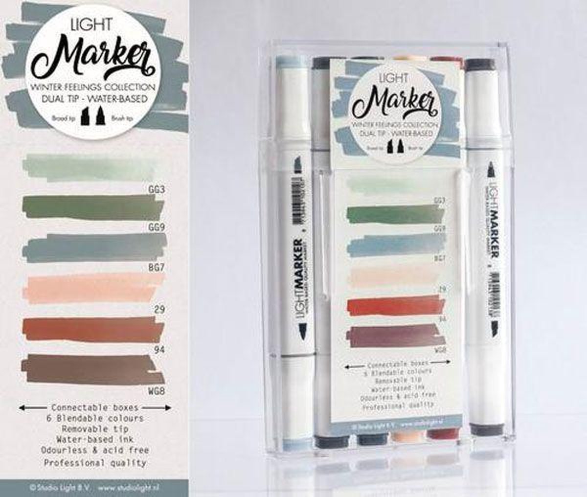 6 Winter Feelings mengbare kleuren in op elkaar aansluitbare dozen Verwijderbare tip Op water gebaseerde inkt Geurloos en zuurvrij Professionele kwaliteit