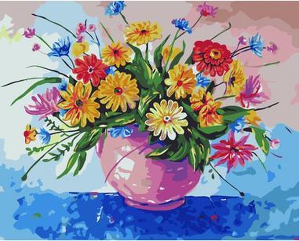Wizardi Schilderen op Nummer Bloemstuk 40x50 cm