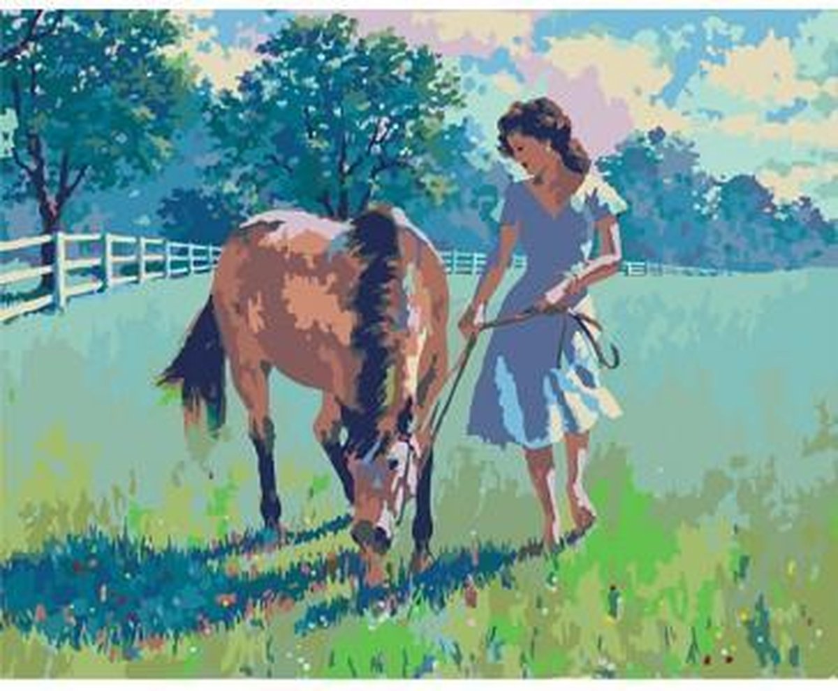 Wizardi Schilderen op Nummer Meisje met Paard 40x50 cm
