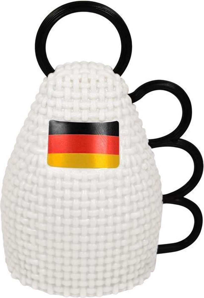 Moedig je voetbalteam aan met de Caxirola in het stadion! Pak de rammelaar op en laat je favoriet zien dat je er helemaal in bent! Dit zorgt niet alleen voor veel plezier, maar zorgt ook voor een warme sfeer in de rijen fans! De Caxirola is de nieuwe Vuvuzela en daarmee een gelijkwaardige opvolger van het populaire ventilatorinstrument dat op het WK in Zuid-Afrika werd gebruikt. Het plastic instrument lijkt op de Caxixi van Braziliaanse origine, vergelijkbaar met een maracas. Zo heb je voetbal nog nooit meegemaakt! Kenmerken: Design: Duitse kleuren Materiaal: kunststof Type: rammelaar Met vingertabs Afmetingen (LxBxH): 16 x 12 x 7,5 cm
