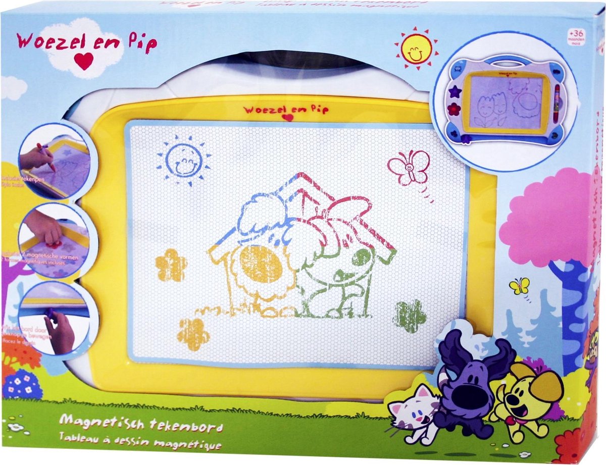 Woezel en Pip magnetisch tekenbord Met dit magnetische tekenbord van Woezel en Pip heeft jouw kind uren tekenplezier zonder te knoeien. Met de magnetische pen maak jouw kind de mooiste tekeningen en ze wist het ook zo weer uit! Ideaal speelgoed om kinderen zoet te houden tijdens lange autoritten en het is een geweldige manier om de creativiteit te stimuleren. Specificaties: Kleur: blauw/wit Geslacht: junior Materiaal: kunststof Afmeting: 33 x 25 cm (L x B)