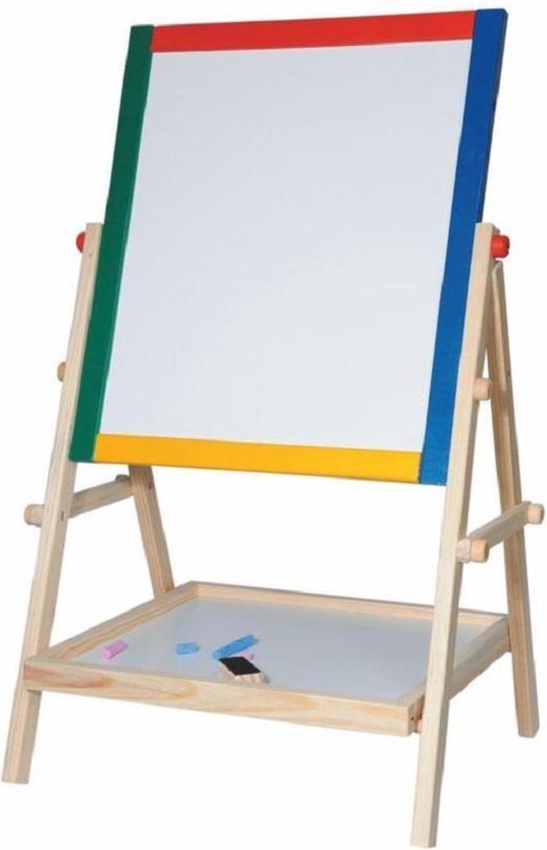 Speciaal voor de kids die hun ouders nog wat willen leren. Dit houten schoolbord, waarop alle kennis gedeeld kan worden, heeft een formaat van 38 x 65,5 cm en is omlijst met leuke kleurtjes. Inclusief krijtjes en wisser. Exclusief whiteboard stiften.