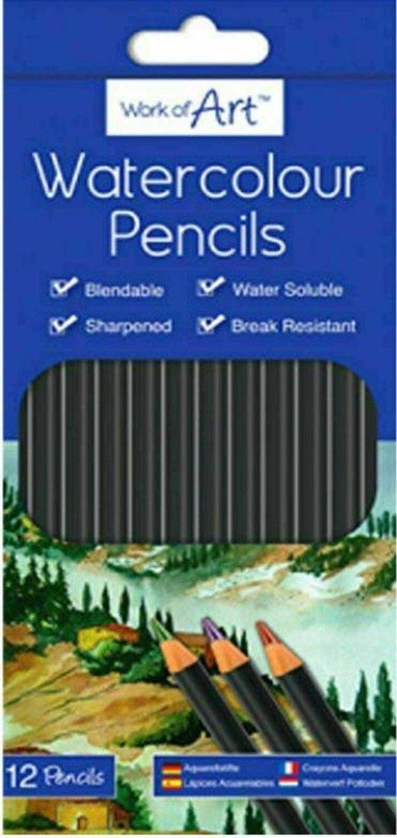 Aquarel Een aquarel, via het Franse aquarelle vanuit het Italiaanse acquarello of acquarella, "gewassen tekening", is een met waterverf gemaakt schilderij. Met de termen aquarel of waterverf wordt ook wel het genre of de aquareltechniek als werkwijze aangeduid. Work of Art aquarelpotloden Deze speciale aquarel kleurpotloden voor volwassenen kenmerken zich alsvolgt: Mengbaar Geslepen Oplosbaar in water Breukvast In de verpakking vind je 12 verschillende kleuren waterverf potloden. Trefwoorden Work of Art aquarelpotloden | 12 Kleurpotloden | Aquarelpotloden | Kleurpotloden voor volwassenen | Waterverf | Tekenen voor volwassenen | Potloden | Aquarel | Tekenen | Aquarelverf