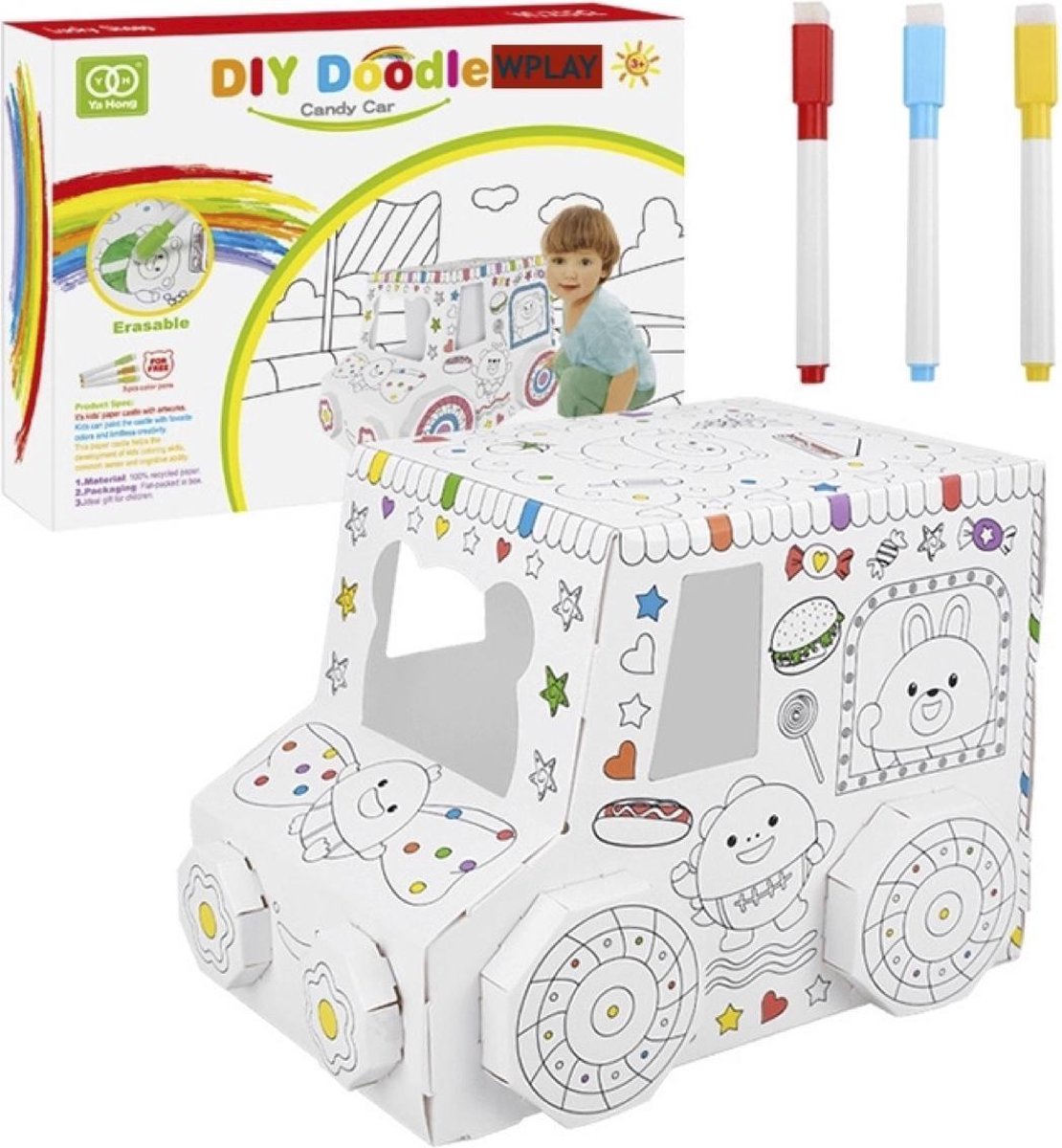 Met kinderen tekenen en verven is voor kinderen het ontdekken van de wereld. Zij doen hiermee hun eigen belevenissen op, drukken verwerkte ervaringen uit en ontplooien creativiteit. Dit is belangrijk voor hun ontwikkeling tekenen brengt creativiteit tot leven. De bewegingsmotoriek wordt geoefend en verder ontwikkeld. Bouw eenvoudig een gaaf auto van karton. Zet de kartonnen platen in elkaar en versier met bijgeleverde kleur pennen. Dus, bouwen, kleuren, decoreren EN spelen! Dat kan allemaal met deze 1 set. Een mooi auto van karton, als basis voor fantasievolle avonturen. onze diy auto is toepasselijk voor leeftijden ouder dan 3 jaar, inspireer je kinderen om talent aan te trekken De duidelijke druk van mooie patronen en rijker kleuren zorgen dat de kinderen niet kunnen wachten om met dit bouwpakket te spelen. ? Tekenen stimuleert verbeelding en creativiteit ? Ze helpen bij de coördinatie tussen de hersenen, ogen en handen ? Het is een manier om de ontwikkeling van het kind te meten