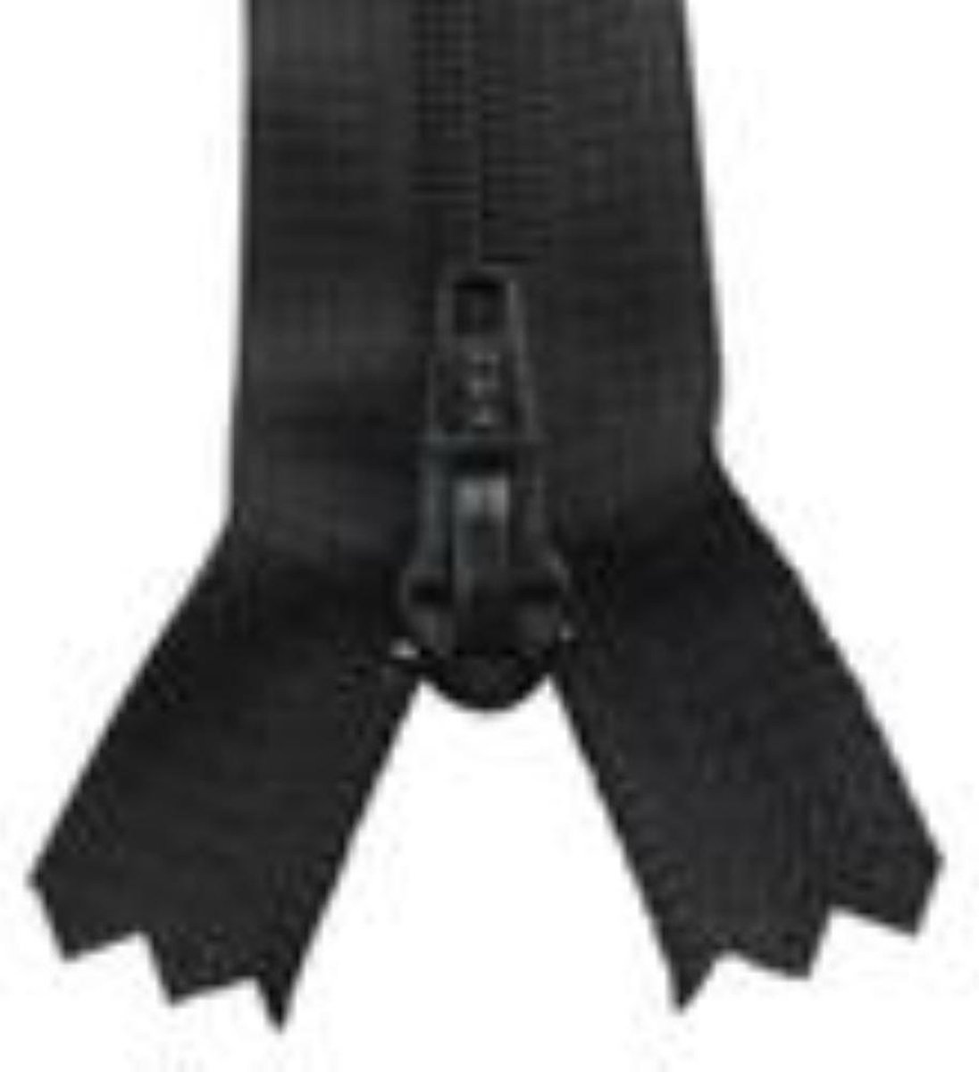 Dubbelnylon rits die vaak in een broek wordt gebruikt. Dit is een dikkere rits dan de rokrits, maar is wel steviger. Kleur: Zwart. Lengte: 12 cm.