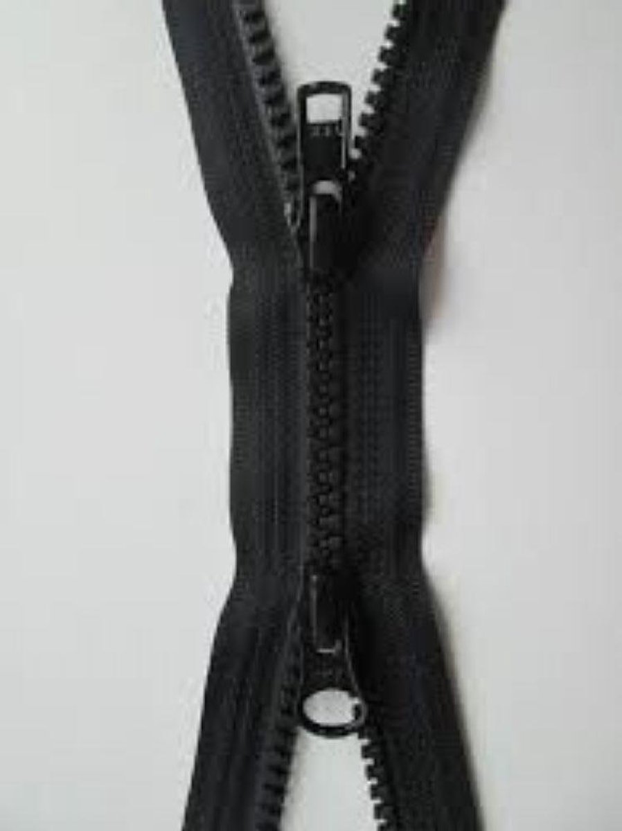 Dubbel deelbare Zwarte, YKK Bloktand Rits, 1 meter, per stuk. Deze rits gaat dus ook open aan de onderkant. De rits heeft twee runners. Deze rits gaat van boven en van onderen open.