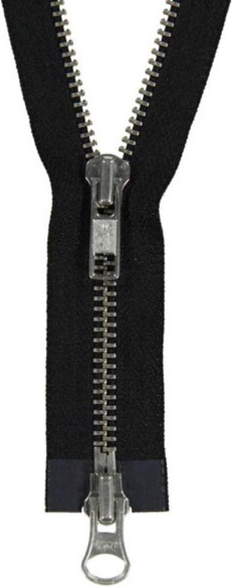 Deze dubbel deelbare rits kan zowel van boven als van onder geopend worden, geschikt voor bijvoorbeeld een jas of een tas. Breedte van de tandjes is 6 mm, en de lengte van de rits is 60 cm. Kleur: Zwart, met Nikkeltandjes.