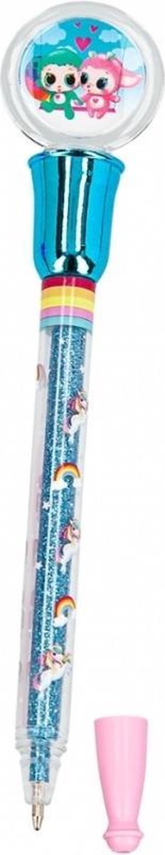 Ylvi & the Minimoomis gelpen met licht Tijdens het schrijven gaat er een lichtje branden! Bij deze pen dus als je op de vulling drukt. Dan geeft de topper aan de bovenkant namelijk licht. De pennen glanzen je tegemoet in de mooie kleuren goud, roze, turquoise en paars. Met lieve afbeeldingen uit de wereld van Ylvi en haar magische vrienden. Gewoon betoverend! Specificaties: Kleur: blauw Geslacht: meisjes Materiaal: kunststof Afmetingen: 1,8 x 3,3 x 16,3 cm (lxbxh) Leeftijd: vanaf 4 jaar