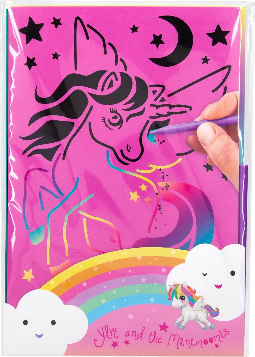 Ylvi & the Minimoomis krasplaatjes Ga lekker creatief aan de slag met de krasplaatjes van Yivi & The Mininoomis. Met de bijgeleverde pen kun je betoverende afbeeldingen in prachtig kleurverloop tevoorschijn toveren. Met de sjablonen kun je zelf ook leuke tekeningen maken. Perfect voor creatievelingen! Specificaties: Kleur: multicolor Geslacht: junior Materiaal: papier, karton Afmetingen: 24,5 x 16,7 x 1 cm (L x B x D) Leeftijd: vanaf 5 jaar Inhoud: 4 Krasplaten 4 Sjablonen 1 Kraspen