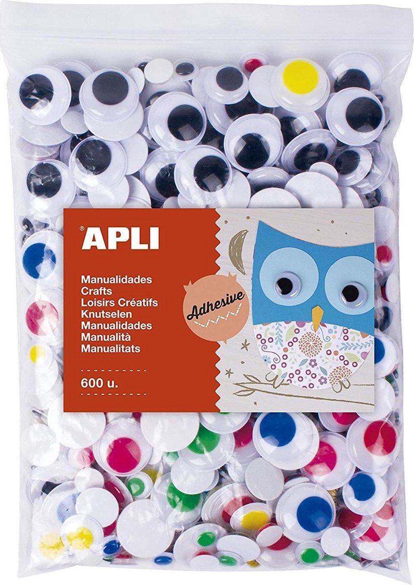 ZAK MET 600 GEASSORTEERDE WIEBELOOGJES VERSCHILLENDE FORMATEN EN KLEUREN AFMETINGEN: 6mm - 8mm - 10mm - 15mm - 20mm