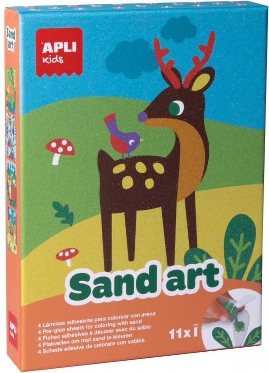 Iedereen kan de mooiste zandschilderijen maken met deze set. Kies 1 van de 4 platen en kras 1 voor 1 gedeeltes weg. Giet zand over de opengekraste delen en schud het teveel er weer af. Met 10 verschillende potjes gekleurd zand. Inhoud: 4 platen met verschillende thema's: vervoer, in het bos, aquarium en ruimte 10 potjes gekleurd zand.