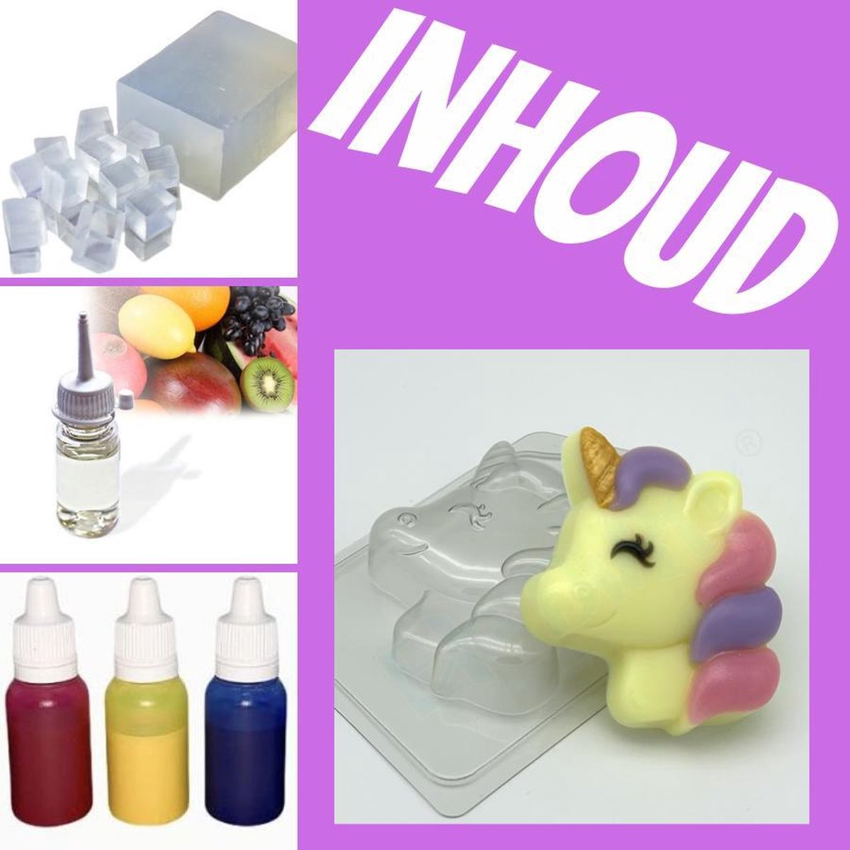 Denkt u wel is aan een nieuwe hobby, droomt u van een extra bijverdienste of u wil gewoon een leuke tijd met uw kinderen doorbrengen op een creatieve manier? Ooit gedacht aan zeepmaken? In onze startpakketten hebben we zeer zorgvuldig alle materialen uitgekozen om u op een leuke en comfortabele manier kennis te laten maken met de kunst van het zeepmaken, tevens hebben we voor u een geillustreerde handleiding samengesteld zodat u zonder enig probleem aan de slag kan gaan. Beginners basispaket, bevat alle nodige materialen en een gebruiksaanwijzing om met gietzeep te leren werken. Inhoud: -500 gram gietzeep (transparant) -3×10 ml cosmetische kleurstof (geel, blauw, rood) -1×10 ml geurolie voor gietzeep (FruitMix) -1 plastic mal (Eenhoorn) Gemiddelde grootte van de afgewerkte zeep: 8.5 × 8.5 × 2.5 cm Gemiddeld gewicht van de afgewerkte zeep: 100 gr Deze set is een samenstelling van verschillende producten en er is geen gezamenlijke verpakking! Gebruiksaanwijzing is terug te vinden