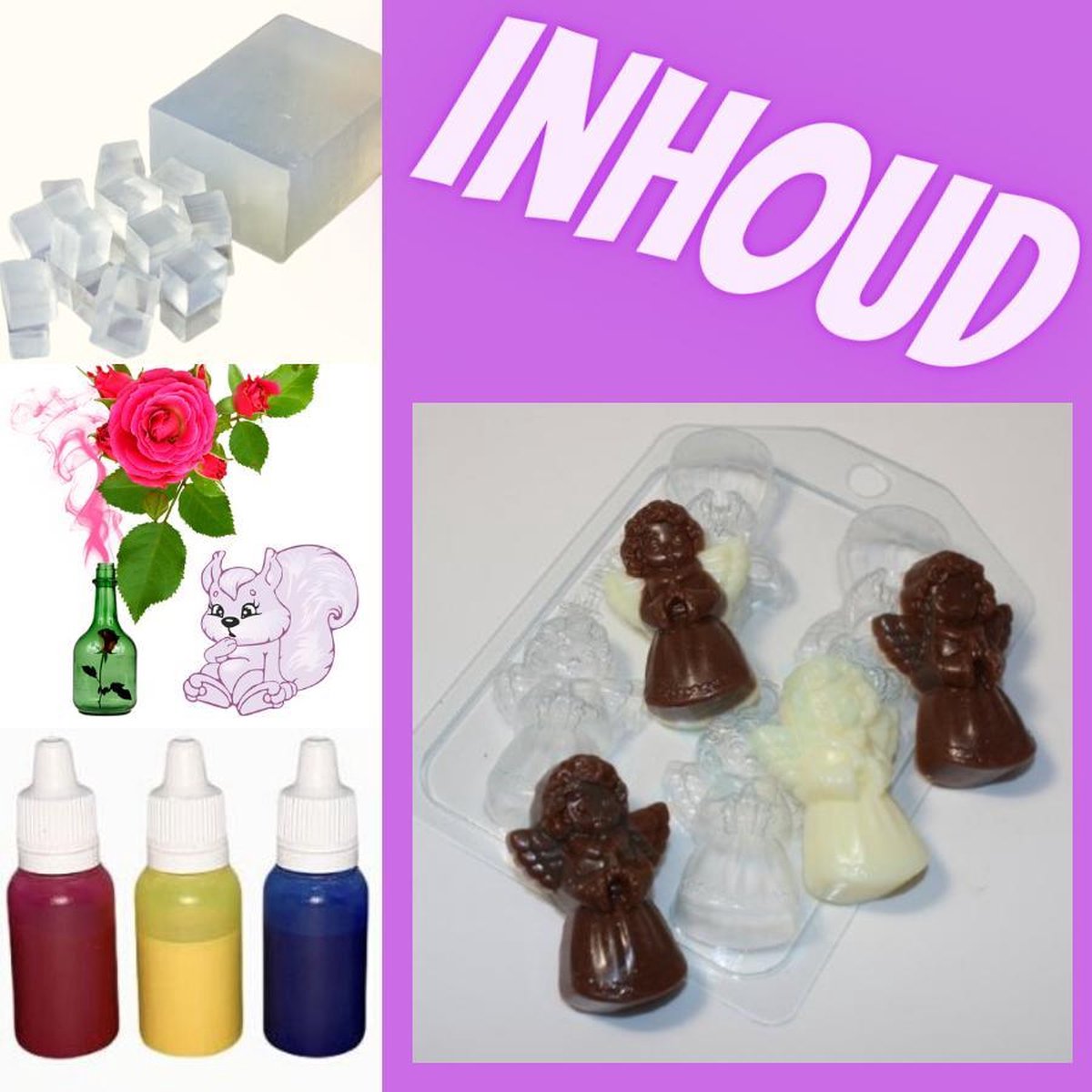 Denkt u wel is aan een nieuwe hobby, droomt u van een extra bijverdienste of u wil gewoon een leuke tijd met uw kinderen doorbrengen op een creatieve manier? Ooit gedacht aan zeepmaken? In onze startpakketten hebben we zeer zorgvuldig alle materialen uitgekozen om u op een leuke en comfortabele manier kennis te laten maken met de kunst van het zeepmaken, tevens hebben we voor u een geillustreerde handleiding samengesteld zodat u zonder enig probleem aan de slag kan gaan. Beginners basispaket, bevat alle nodige materialen en een gebruiksaanwijzing om met gietzeep te leren werken. Inhoud: -500 gram gietzeep (transparant) -3×10 ml cosmetische kleurstof (geel, blauw, rood) -1×10 ml geurolie voor gietzeep (roos) -1 plastic mal (Engeltjes) Deze set is een samenstelling van verschillende producten en er is geen gezamenlijke verpakking! Gebruiksaanwijzing is terug te vinden en desnoods te dowloaden op deze webpagina!
