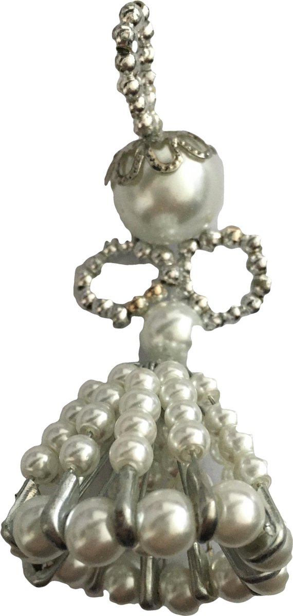 Een compleet zelfmaaksetje om een leuke kerstengel te maken met veiligheidsspelden. Het engeltje bestaat uit genoeg speldjes, pareltjes, kapjes en draad. Ook zit er een duidelijke beschrijving bij hoe u dit moet maken. De foto toont een gekleurde engel, maar u ontvangt bij bestelling van dit setje een witte engel!!!. Erg leuk om zelf te maken.