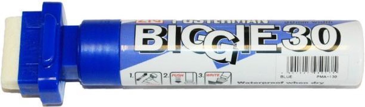 Productbeschrijving Kuretake ZIG Posterman Biggie 30 Short Marker - 30mm Breed - Blauw???Handige Sign Marker met 30mm brede schrijfbreedte. Water-resistent na drogen, pigmenthouden, lichtvast, geurloos, xyleen-vrij.?Geschikt voor oa. Krijtbord, glas, whiteboard, spiegel, metaal, blackboard, illumiboard, papier, plastic, hout. Let op: Niet gebruiken op poreuze ondergrond. Uitwisbaar van niet-poreuze ondergrond met een licht vochtige doek.