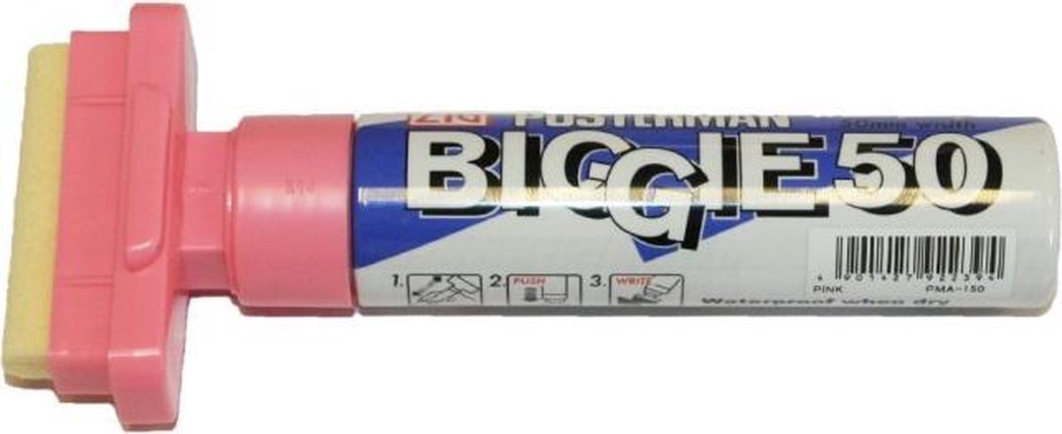 Productbeschrijving Kuretake ZIG Posterman Biggie 50 Short Marker - 50 mm Breed - Roze Handige sign Marker met 50 mm brede schrijfbreedte. Water-resistent na drogen, pigmenthouden, lichtvast, geurloos, xyleen-vrij.??Geschikt voor oa. krijtbord, glas, whiteboard, spiegel, metaal, blackboard, illumiboard, papier, plastic, hout.??Let op: Niet gebruiken op poreuze ondergrond Uitwisbaar van niet-poreuze ondergrond met een licht vochtige doek. Kenmerken Soort marker: Posterman Biggie 50 Short Marker?Kleur Krijt: Roze 15,5 x 6,5 x 2,5 cm