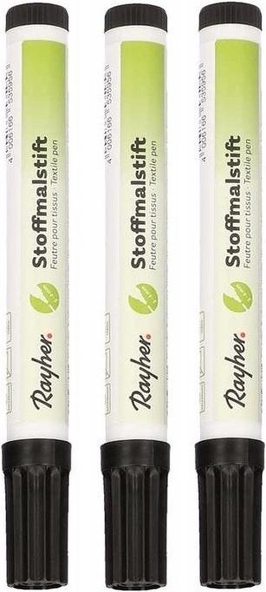 Zwarte textielstiften met dikke punt. Stift met een dikke punt om op kleding (textiel) te schrijven zonder te fixeren! Schrijven, laten drogen en klaar om te dragen. De stift is watervast dus het textiel kan in de wasmachine. U ontvangt 3 stuks.